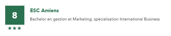 Dans le Classement National, spécialité Commerce International, le Bachelor de l'ESC Amiens est classé 8ème :