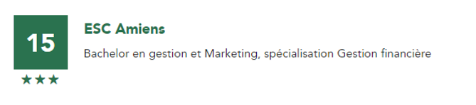 Dans le Classement National, spécialité Banque - Finance, le Bachelor de l'ESC Amiens est classé 15ème :