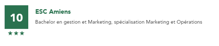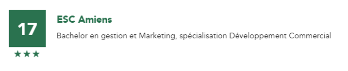 Dans le Classement National, spécialité Négociation, Vente et Commerce, le Bachelor de l'ESC Amiens est classé 17ème :