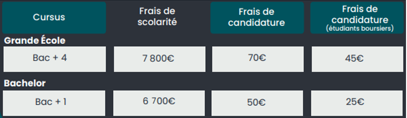 Les frais de scolarité sont les suivants en fonction du programme choisi :